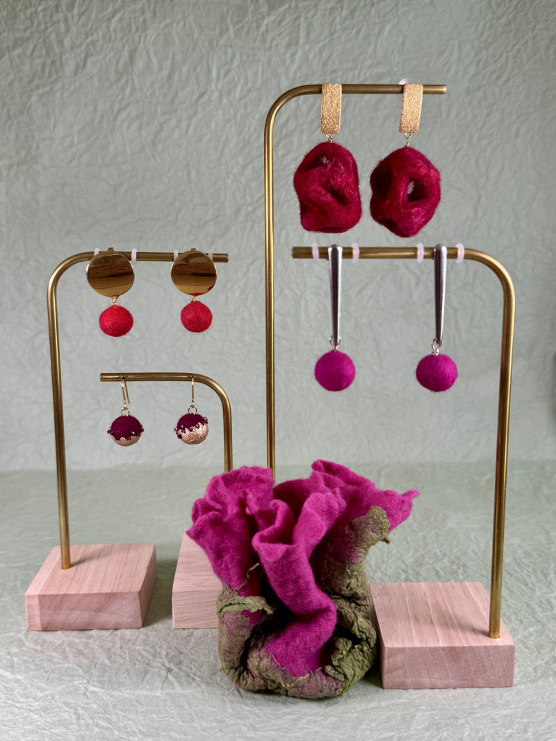Leicht, verspielt und dabei auffallend – meine Filzohrringe vereinen Eleganz mit angenehmem Tragekomfort. Sie sind perfekt, wenn Du Individualität zeigen möchtest: ein stilvoller Begleiter für Deinen Alltag ebenso wie für besondere Anlässe.